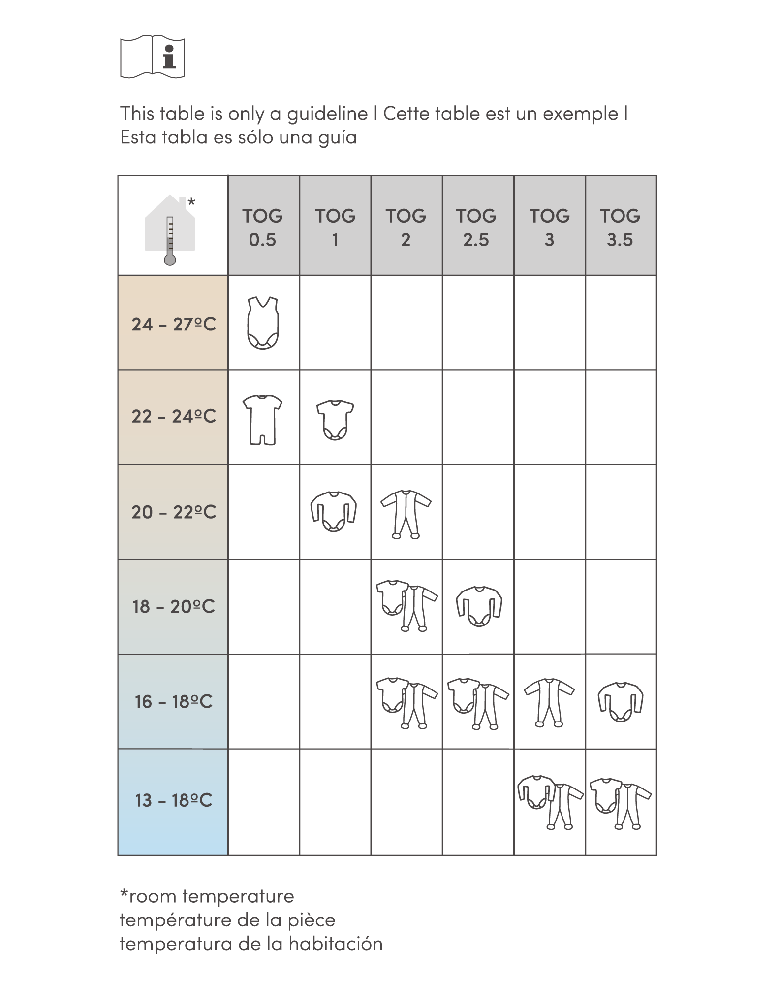Hoe hoger de TOG-waarde, hoe hoger de warmte- en isolatiegraad van de stof. Is het koud in de slaapruimte, kies dan een slaapzak met een hoger TOG-cijfer. De TOG waarde gaat van 0 tot 4 en geldt enkel bij kamertemperatuur, niet voor buiten.