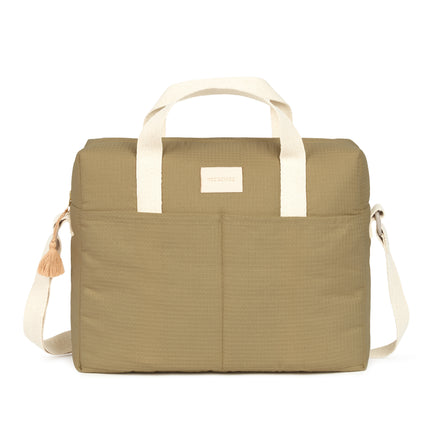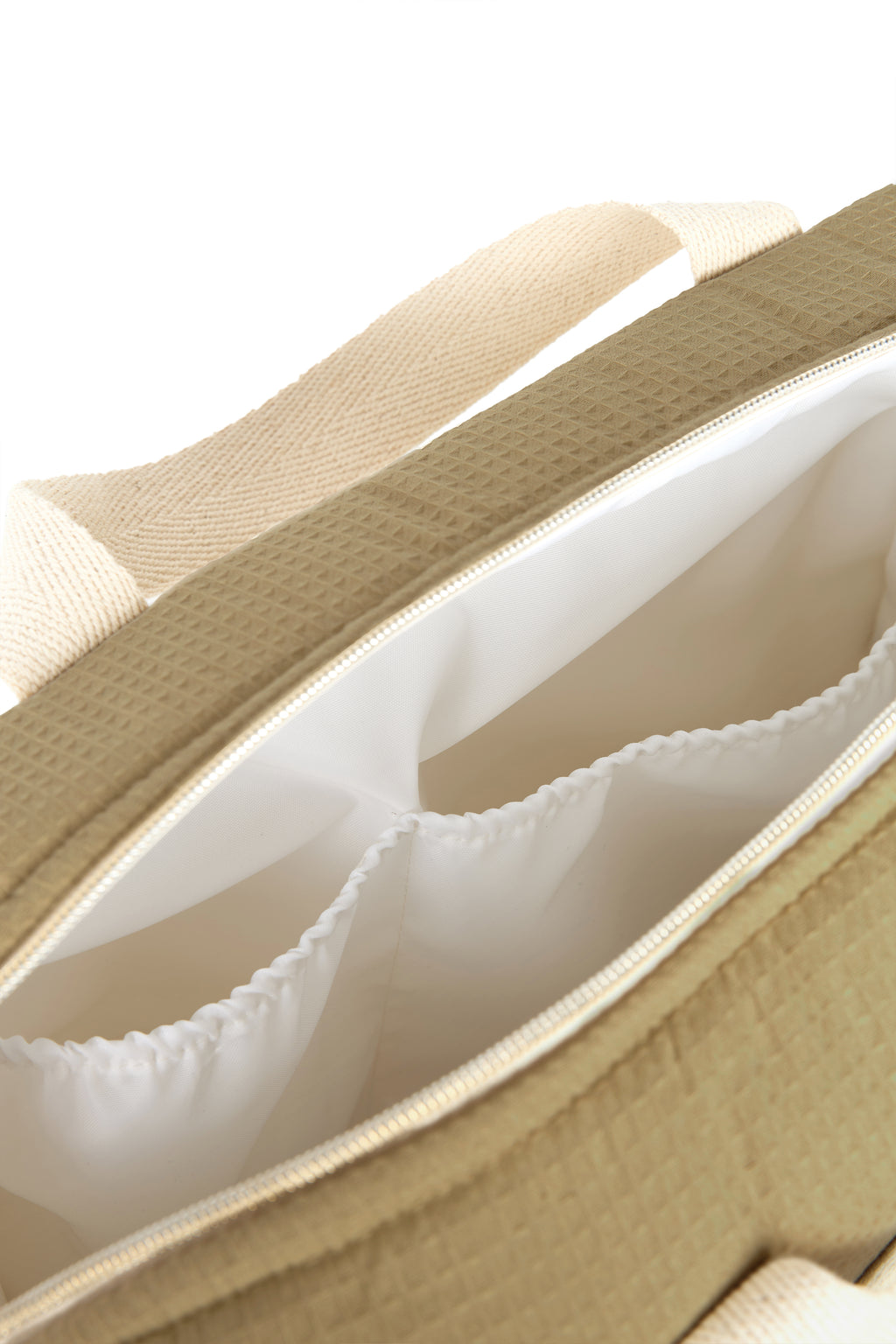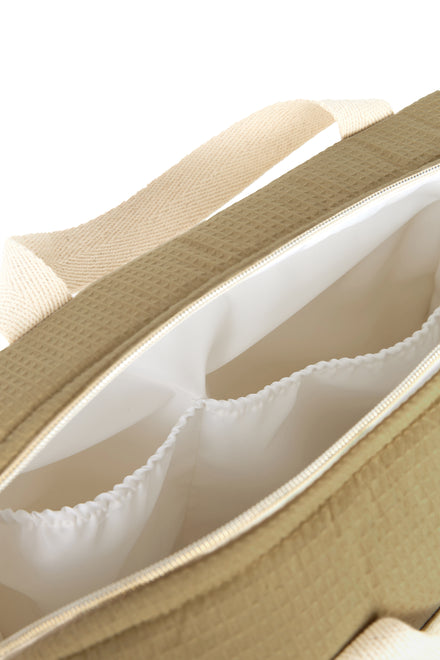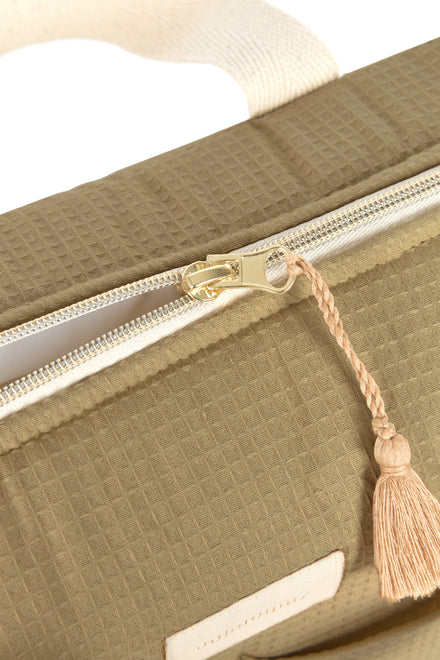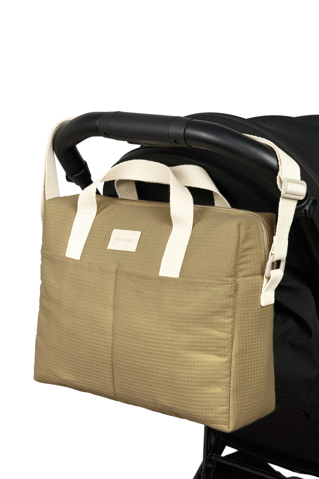 Deze Gala tas is gemaakt in de mooie honeycomb print en de tassel aan de rits. De 2 korte linten maken het makkelijk om deze luiertas te dragen. Het lange lint kan je makkelijk over de kinderwagen hangen.