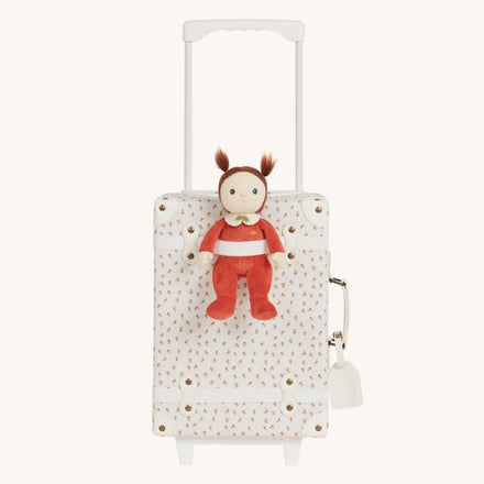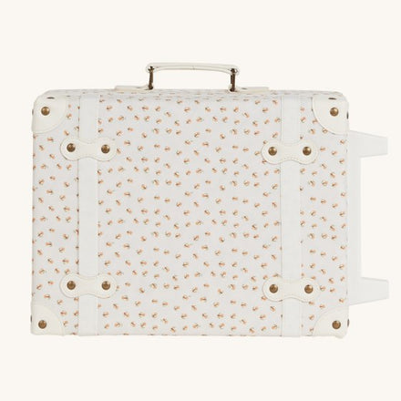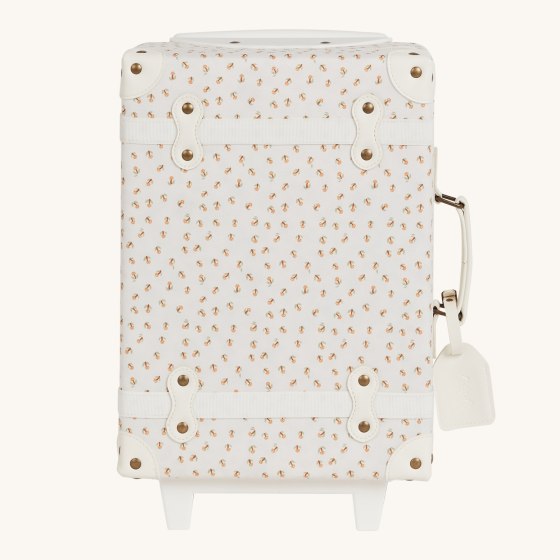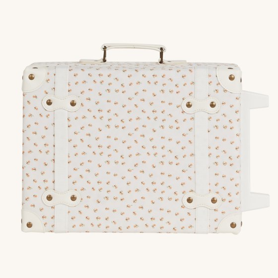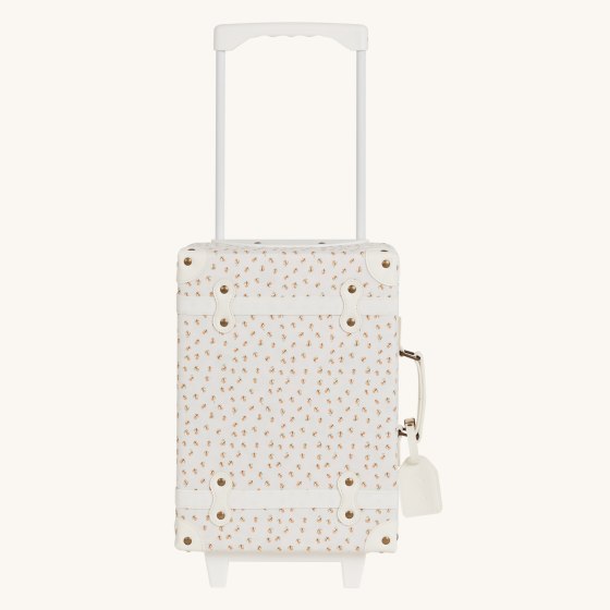 De prachtige kinder reiskoffer See-Ya Suitcase van Olli Ella. In een mooi handzaam kinderformaat en dat is eigenlijk best jammer want wij willen ook wel zo'n mooie koffer om mee op reis te gaan!