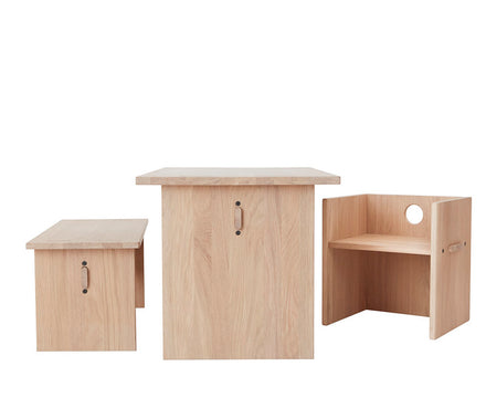 Superleuk eiken tafeltje dat prachtig zal staan in de kinderkamer of speelhoek. Heel leuk in combinatie met het Arca tafeltje van Oyoy Living!
