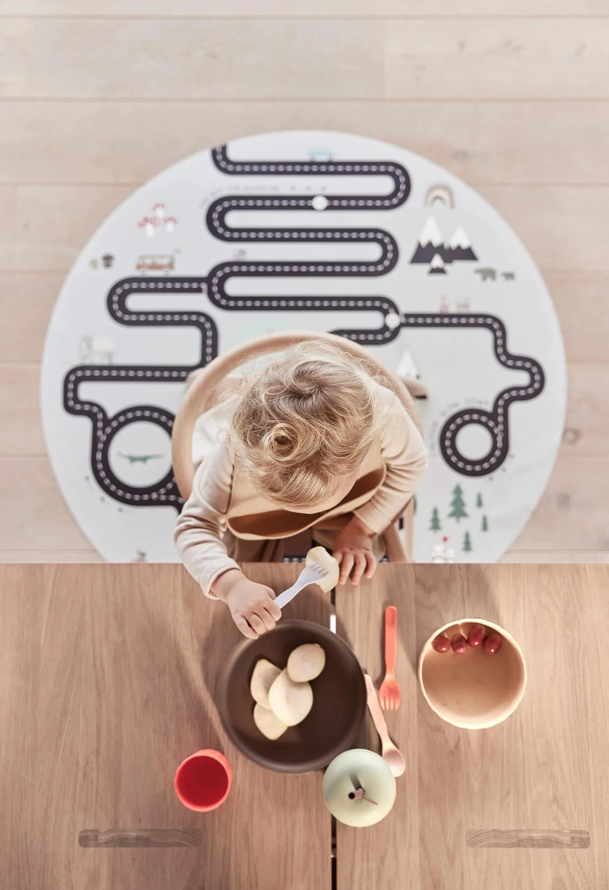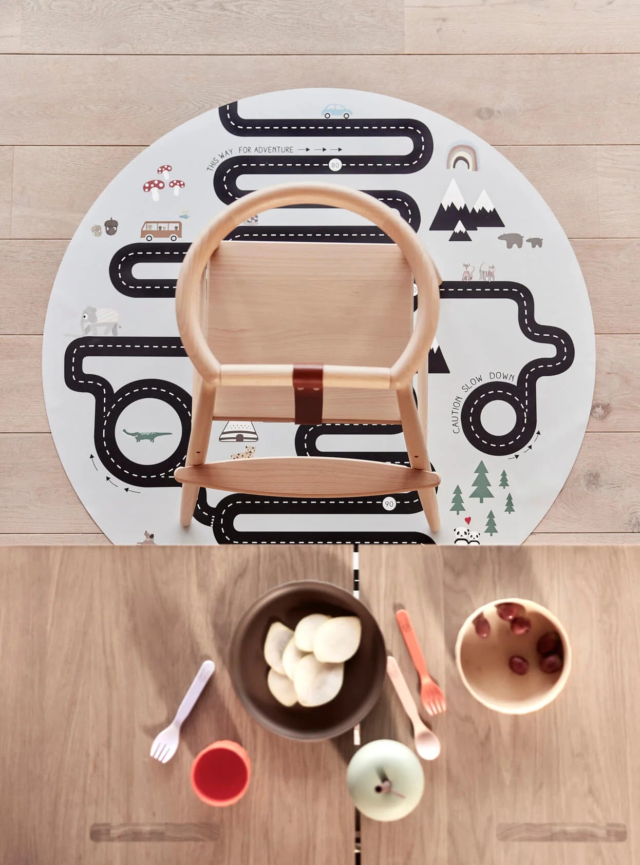 Leuke en functionele knoei- en speelmat van OYOY Living. Dit tapijt is anti-slip en perfect te gebruiken tijdens het eten & spelen.