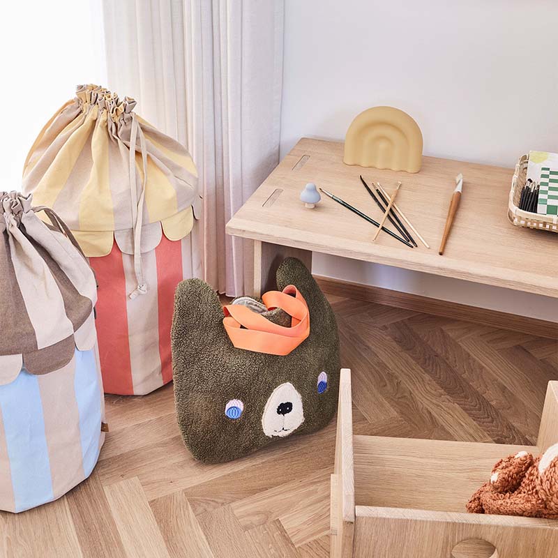 Het charmante kleurgebruik en het speelse cirkustent-silhouet maken deze manden niet alleen functioneel, maar ook een echte eyecatcher in het interieur. Ze bieden voldoende ruimte voor speelgoed, verkleedkleren, knuffels of dagelijkse spullen, en nodigen kinderen uit om zelf mee te helpen met opruimen — waardoor opruimen vanzelf een onderdeel van het spel wordt.