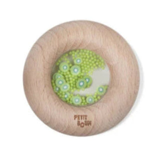 Leuk sensorisch speelgoed van Petit Boum voor de allerkleinsten. Leuke gladde houten rammelaars in de vorm van een donut zijn perfect voor de kleine handjes. Herken lekkere fruit- en groentevormen bij het schudden van de donut.