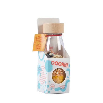 Een klank- en kleurrijke wereld binnen handbereik. Stimuleer het zicht, aanraking, geluid. Observeer de elementen, schudden en luisteren naar de verschillende geluiden, stapelen, rollen. Geschikt vanaf 3 maanden.