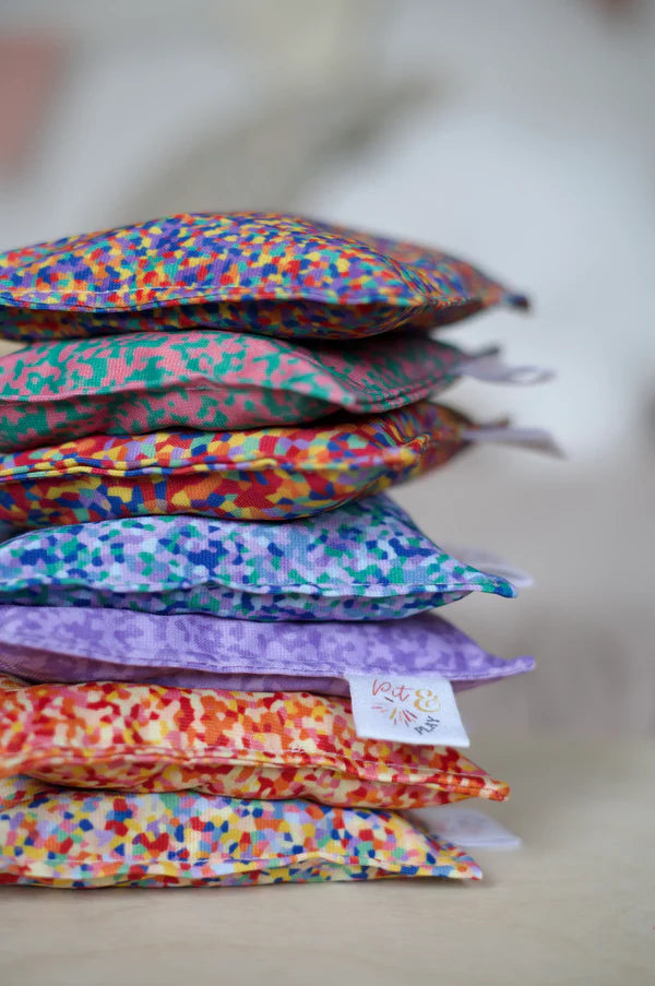 Dit leuke pittenzakje van Pit and Play is speciaal ontworpen zodat hij exact matcht bij de Confetti Stapelstein. Ook leuk in combinatie met andere open einde speelgoed zoals Grapat of magnetische tegels van Cleverclixx.