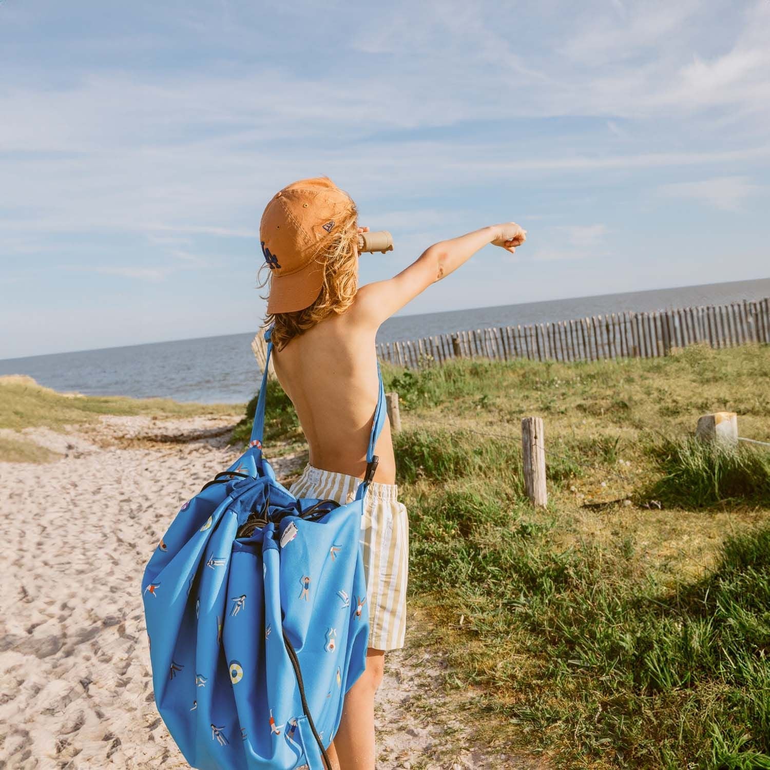De waterdichte Play and Go speelgoedkleed en opbergzak Outdoor Swim Fun is dé must have voor deze zomer. Gemaakt van waterafstotend materiaal en een handige riem om goed te kunnen dragen. Is het gras nog nat in het park? Geen probleem, want met deze Play & Go zak/kleed houdt je alles gewoon droog! En er zit zelfs een klein gaatje in het kleed zodat al het zand of water er weer gemakkelijk uit kan vallen. Handig voor alle buitenactiviteiten met kinderen. Met een leuk zwem printje!