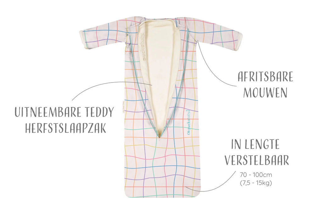Puckababy luxe 4 seizoenen slaapzak in lengte verstelbaar. In een handomdraai heb je de juiste slaapzak voor elke temperatuur, zodat je kleintje altijd veilig kan doorslapen van baby tot peuter. Met deze ene slaapzak slaapt je kindje 2 jaar veilig en goed in elk seizoen. Van 0.5 - 2.5 TOG. Een complete, stijlvolle en multifunctionele slaapzak met prachtige details. Voor ouders die enkel het beste voor hun kleintje willen. Bekroonde slaapzak. Nederlands design, gemaakt in Europa.