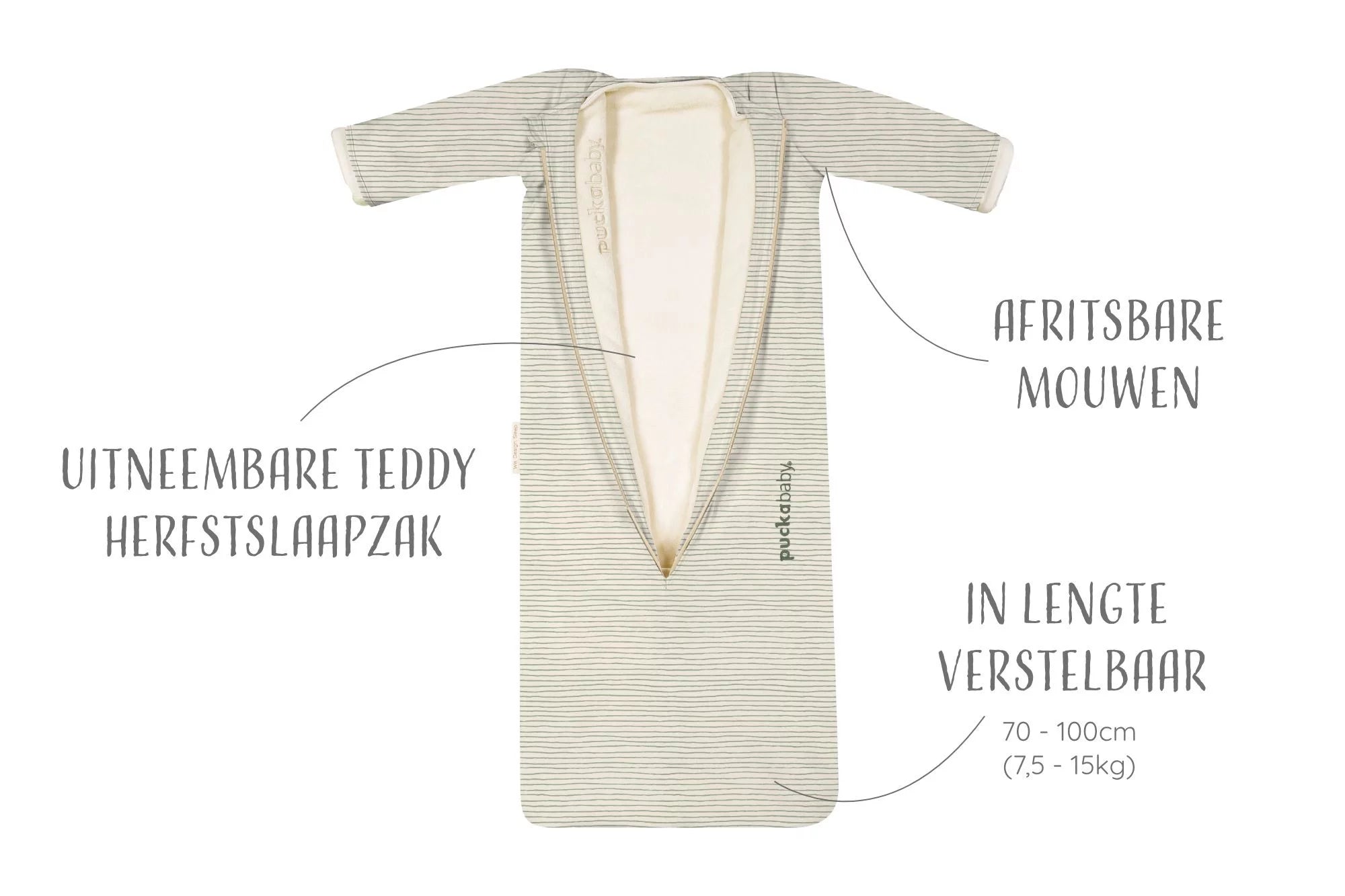 Puckababy luxe 4 seizoenen slaapzak in lengte verstelbaar. In een handomdraai heb je de juiste slaapzak voor elke temperatuur, zodat je kleintje altijd veilig kan doorslapen van baby tot peuter. Met deze ene slaapzak slaapt je kindje 2 jaar veilig en goed in elk seizoen. Van 0.5 - 2.5 TOG. Een complete, stijlvolle en multifunctionele slaapzak met prachtige details. Voor ouders die enkel het beste voor hun kleintje willen. Bekroonde slaapzak. Nederlands design, gemaakt in Europa.