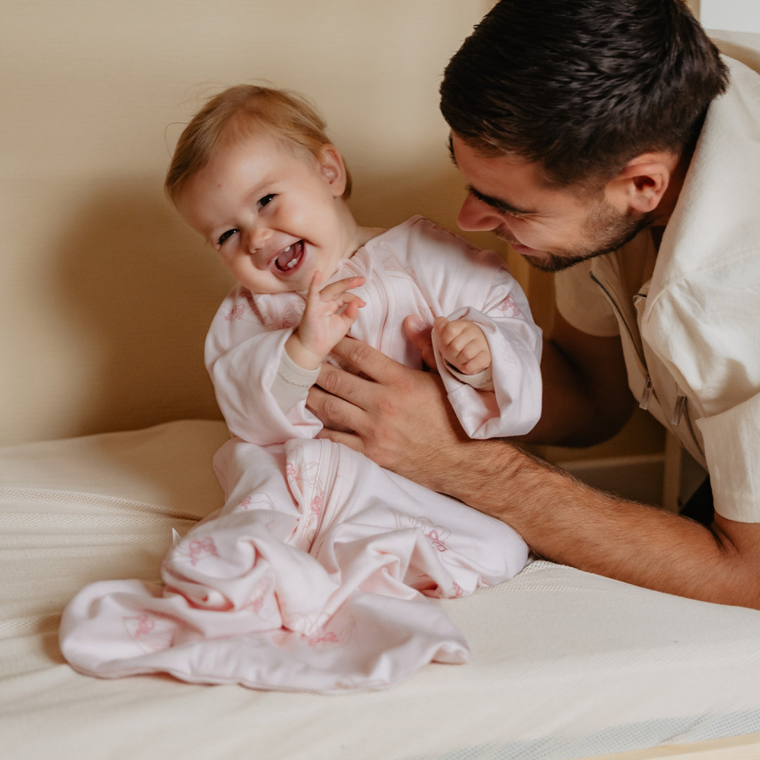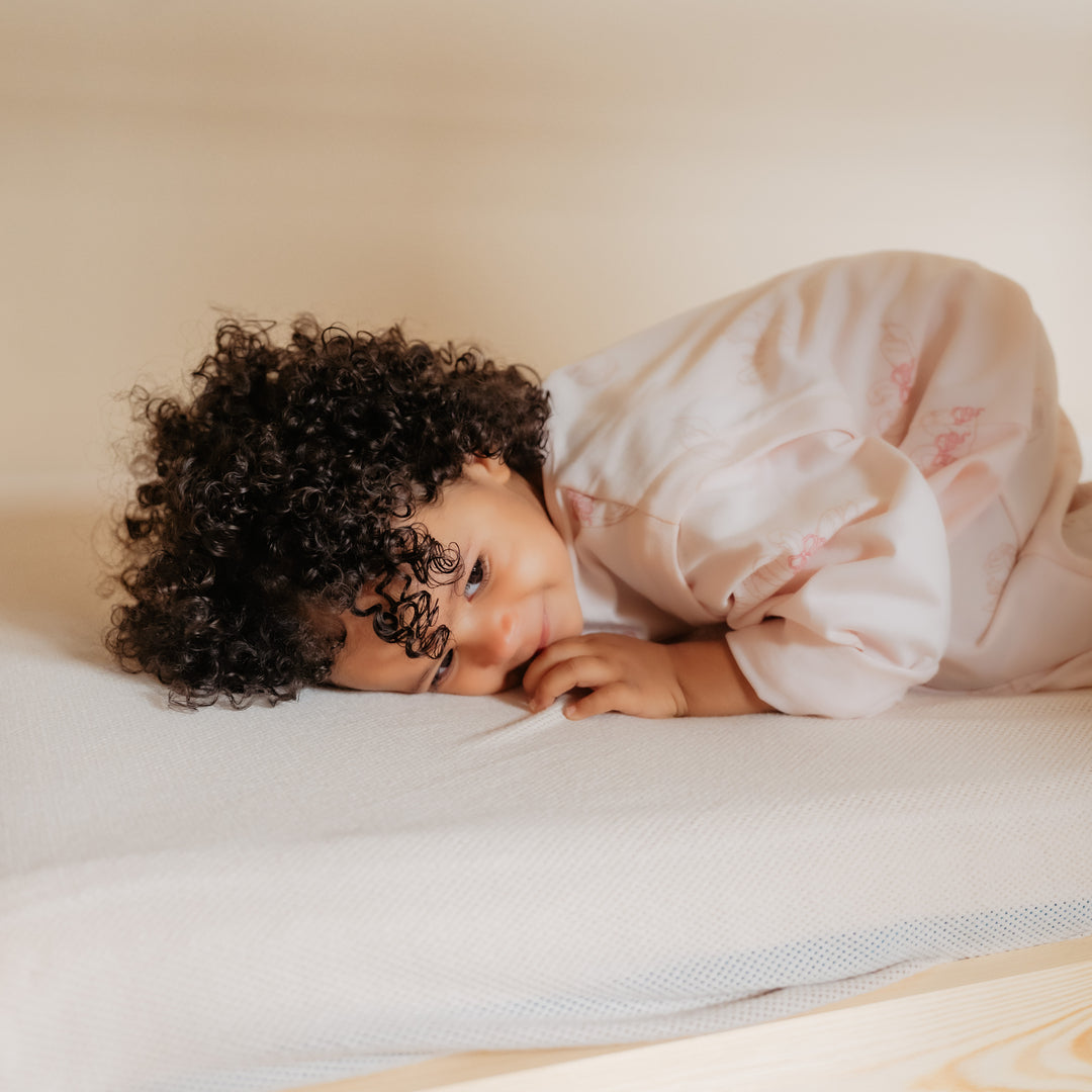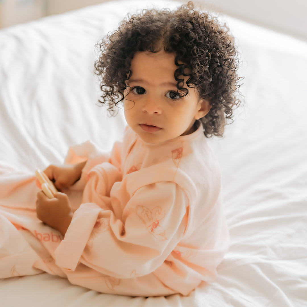 Hoe kies je de juiste maat voor je slaapzak? Om te weten welke maat jouw kindje nodig heeft, meet je je baby op van de schouders tot de voetjes. Tel daar nog zo’n 10 à 15 centimeter bij en je hebt de juiste maat! Belangrijk: koop je slaapzak nooit te groot. Als de hals of armopeningen te groot zijn, kan je baby wegzakken in de slaapzak. Kies een slaapzak met de juiste TOG waarde. TOG staat voor Thermal Overall Grade. Deze waarde geeft aan hoe warm een stof/textiel is en hoeveel lichaamswarmte de stof vasthoudt. Hoe hoger de TOG-waarde, hoe hoger de warmte- en isolatiegraad van de stof. Is het koud in de slaapruimte, kies dan een slaapzak met een hoger TOG-cijfer. De TOG waarde gaat van 0 tot 4 en geldt enkel bij kamertemperatuur, niet voor buiten. Ontdek er alles over in onze blog: https://www.degeleflamingo.com/blogs/news/alles-wat-je-wil-weten-over-tog