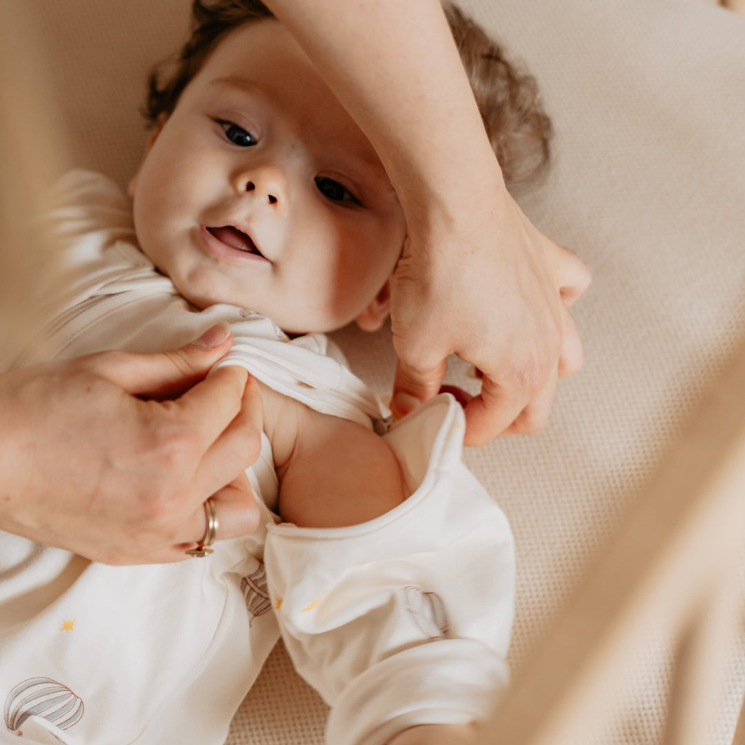 Hoe kies je de juiste maat voor je slaapzak? Om te weten welke maat jouw kindje nodig heeft, meet je je baby op van de schouders tot de voetjes. Tel daar nog zo’n 10 à 15 centimeter bij en je hebt de juiste maat! Belangrijk: koop je slaapzak nooit te groot. Als de hals of armopeningen te groot zijn, kan je baby wegzakken in de slaapzak. Kies een slaapzak met de juiste TOG waarde. TOG staat voor Thermal Overall Grade. Deze waarde geeft aan hoe warm een stof/textiel is en hoeveel lichaamswarmte de stof vasthoudt. Hoe hoger de TOG-waarde, hoe hoger de warmte- en isolatiegraad van de stof. Is het koud in de slaapruimte, kies dan een slaapzak met een hoger TOG-cijfer. De TOG waarde gaat van 0 tot 4 en geldt enkel bij kamertemperatuur, niet voor buiten. Ontdek er alles over in onze blog: https://www.degeleflamingo.com/blogs/news/alles-wat-je-wil-weten-over-tog