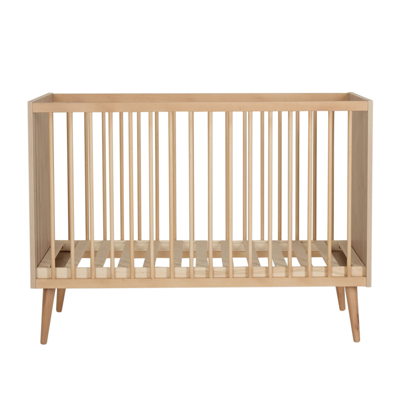 Een prachtig babybedje (120x60cm) In Natural Oak van hoogwaardige kwaliteit. Dit Quax bedje Cocoon werd gemaakt uit beukenhout en is voorzien van vier houten beuken voetjes.