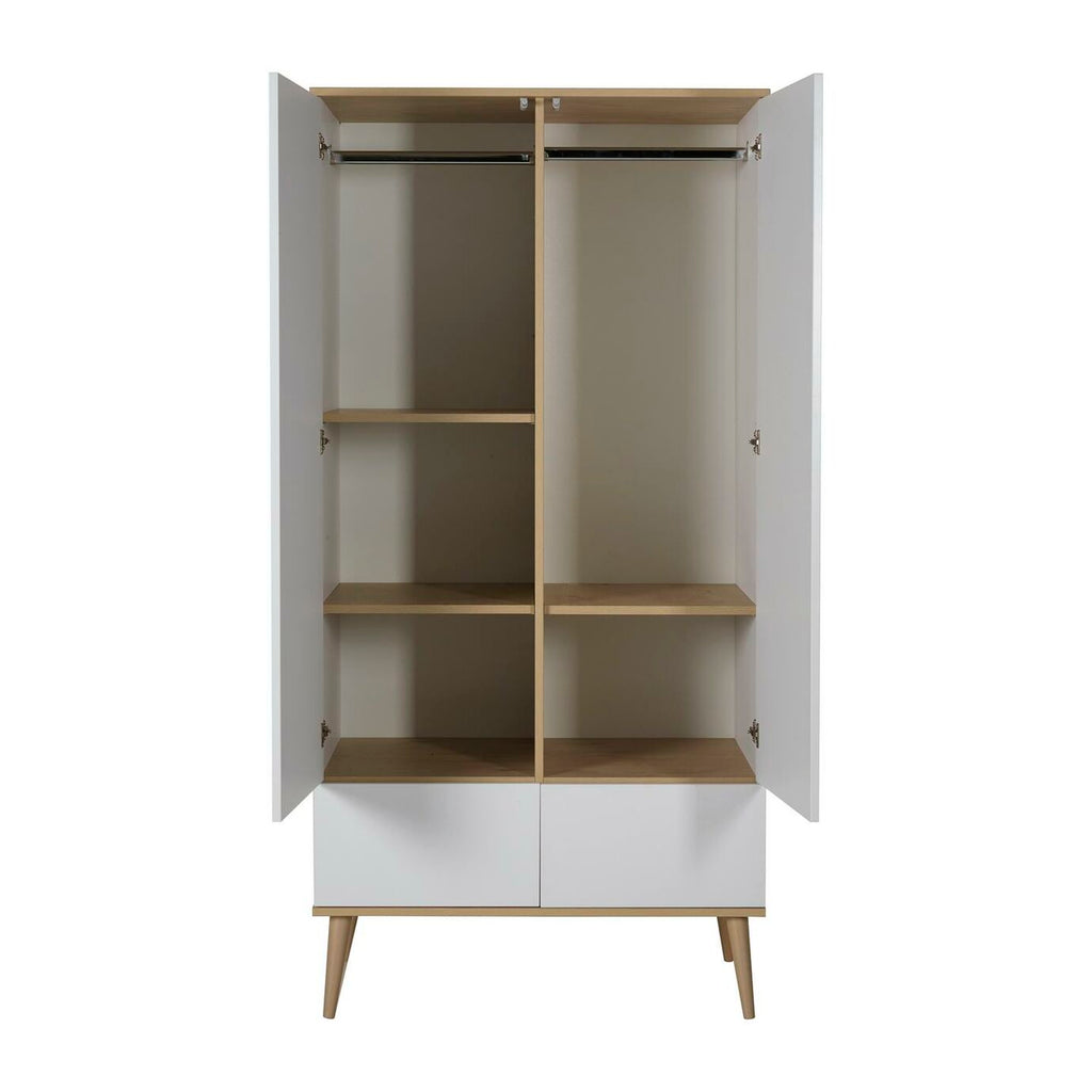 Deze prachtige kast behoort tot de Quax collectie van Flow. Deze kast is voorzien van verschillende opbergvakken die je zelf kan indelen. De Quax Flow kast is voorzien van 2 laden en 2 deuren met 3 legplanken en 1 kleerroede.