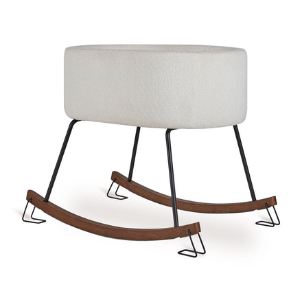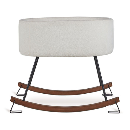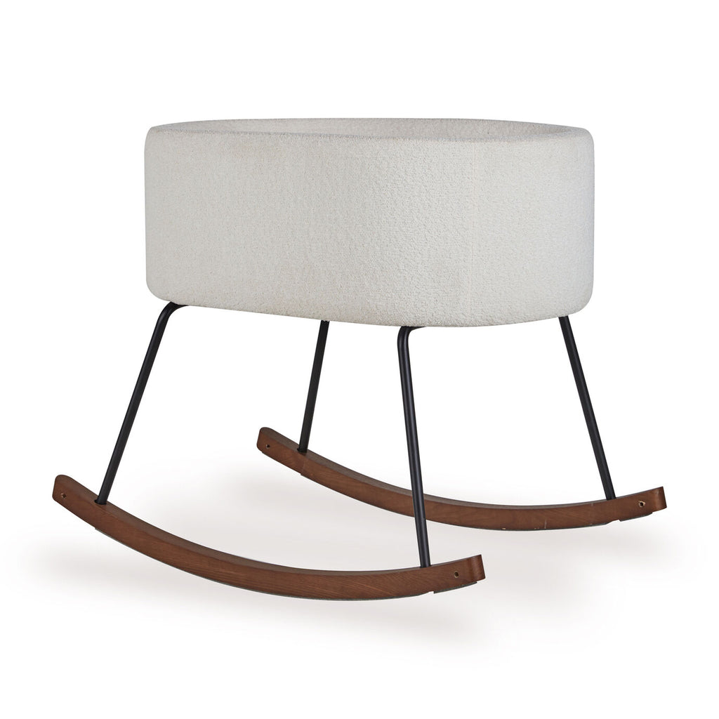 Supermooi, deze tijdloze rocking wieg van Quax. De houten sleden zijn bekleed met vilt voor krasvrij gebruik. De binnenhoes van de wieg is afneembaar.