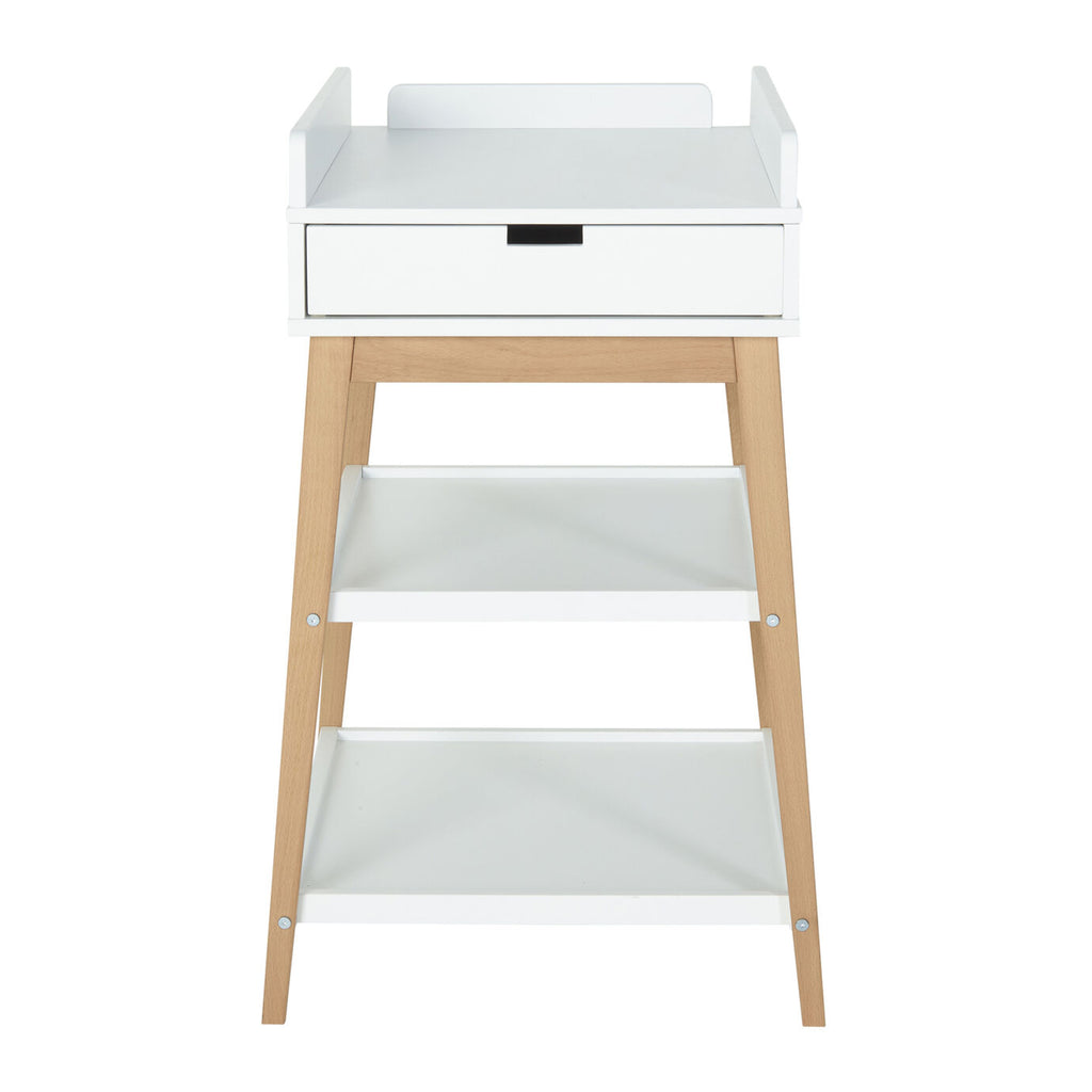 Deze prachtige luiertafel met extra lade in de kleur white & natural is niet enkel erg handig om je kindje in te verschonen, maar staat ook nog eens supermooi in je interieur met zijn tijdloze design.