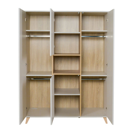 Deze prachtige kast behoort tot de Quax collectie van Loft. Deze kast is voorzien van verschillende opbergvakken die je zelf kan indelen. De Quax Loft kast is voorzien van 4 greeploze draaideuren met 8 legplanken en 4 kleerroedes.