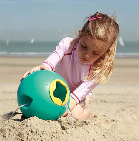 Deze bal zit er absoluut niet uit als een emmer maar het is er wel één. Dit maakt de Ballo helemaal uniek. Niets vervelender dan water halen uit de zee en terugkomen aan je zandkasteel met een halflege emmer. De ronde vorm zorgt ervoor dat er geen druppel water verloren gaat. De gietvorm zorgt ervoor dat het gelijkmatig uitgegoten kan worden.