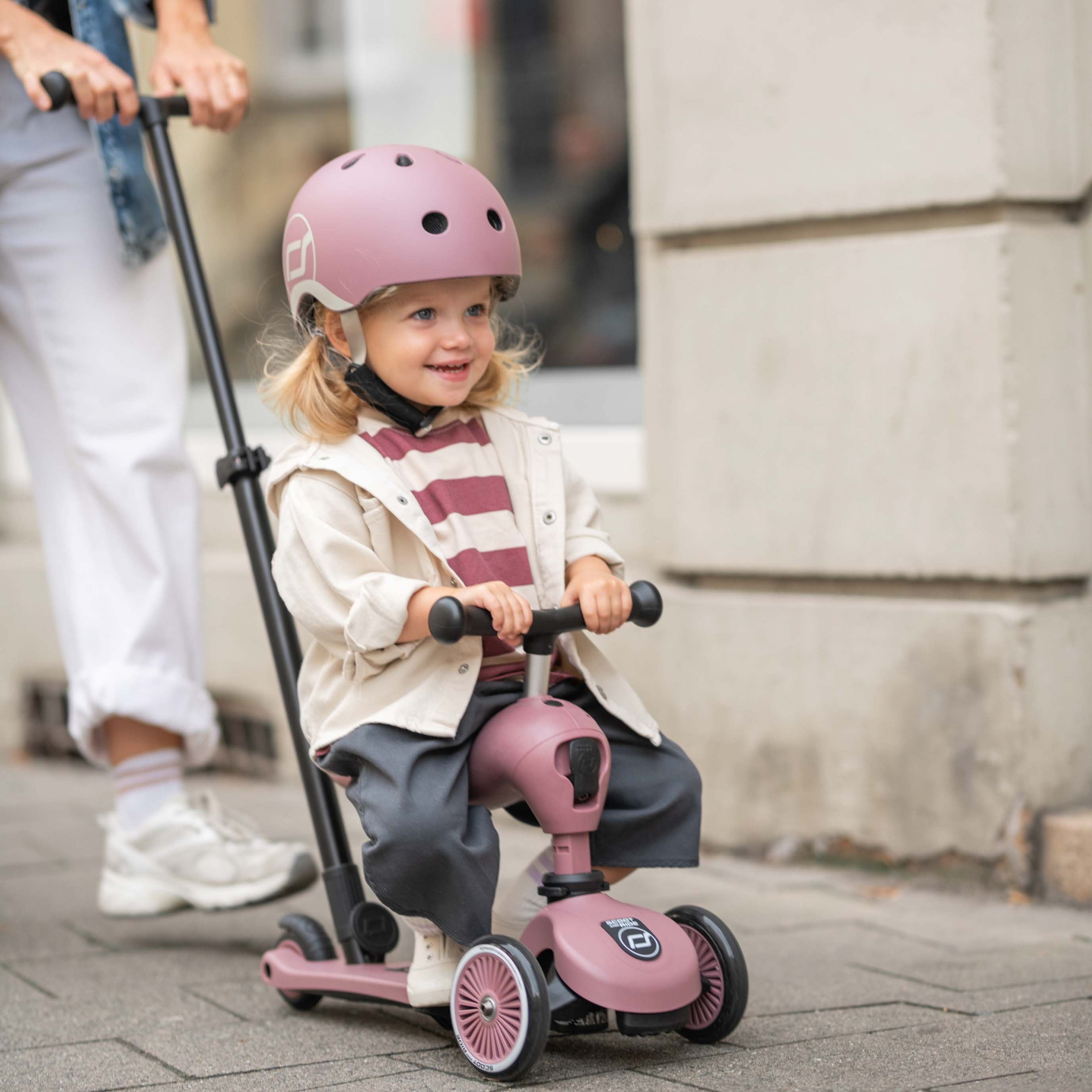 Wat een meerwaarde is deze stang! Alles wat je kan verwachten van scoot and ride: rolt goed, plooit eenvoudig op en groeit mee met je kindje. Ook vanaf heel kleins af aan te gebruiken op wandelingen nu dankzij de duwstang.