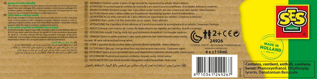 Superleuke crea sets van SES voor je kleine schat. Met de knutselsets van SES is je kindje uren zoet en maakt hij of zij de mooiste knutselwerkjes. Leuke set van 4 potjes vingerverf.