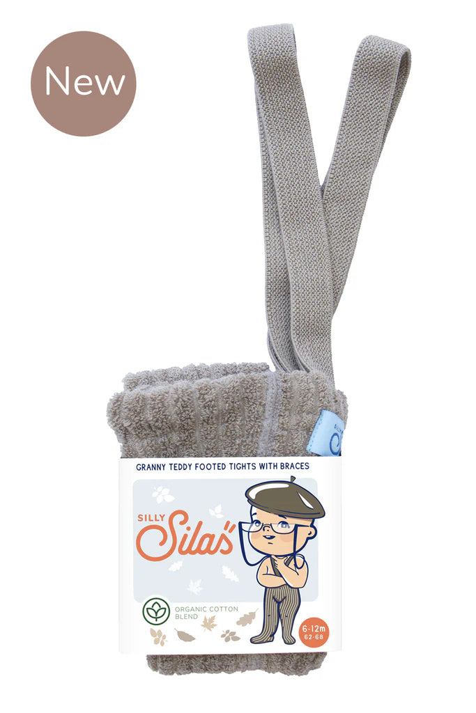 Silly Silas Granny Teddy Tights | Oyster Grey