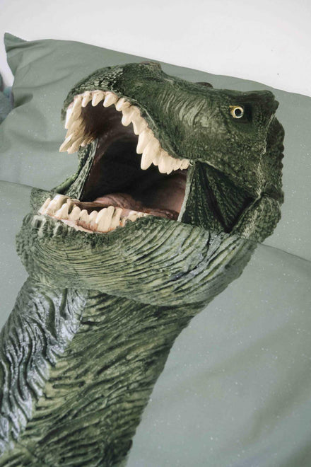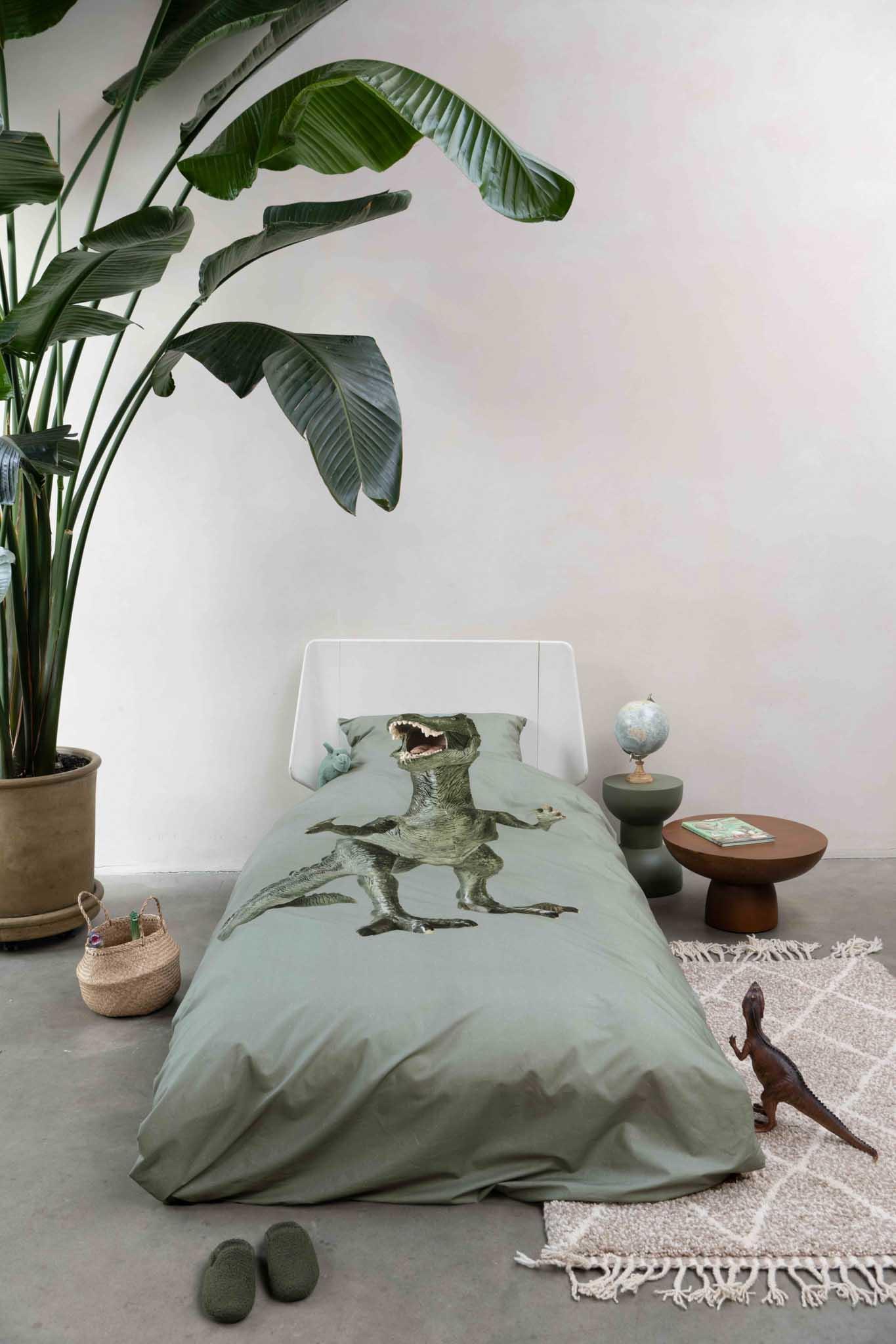 Dino's mogen dan al lang verdwenen zijn, maar in de kinderslaapkamer hebben ze nog altijd de macht. Deze bestsellerprint op wit is nu ook verkrijgbaar in een stoere olijfgroene uitvoering. Kruip onder de dekens en waan je in een Jurassic jungle - pal tussen de tanden van een T-rex. Geen zorgen, deze dino is volkomen tam. Hij komt uit het superzachte bio-katoenen tijdperk.