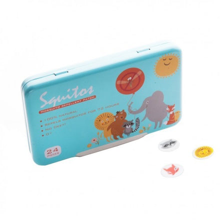 Squitos zijn mugwerende stickers voor kinderen en volwassenen. De stickers bevatten de etherische olie van citronella en Eucalyptus.