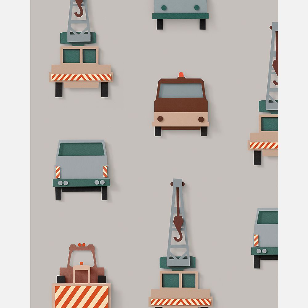 Studio Ditte Behangpapier | Kraanwagen Lichtgrijs