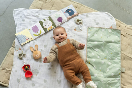 Hoe leuk en handig is dit speelmatje met speeltjes van Taf Toys? De Outdoors Kit bevat allemaal handige producten als je graag met je newborn naar buiten gaat. Het verschoningskussen kan je snel opvouwen tot een compacte draagtas. Ideaal als je onderweg bent!