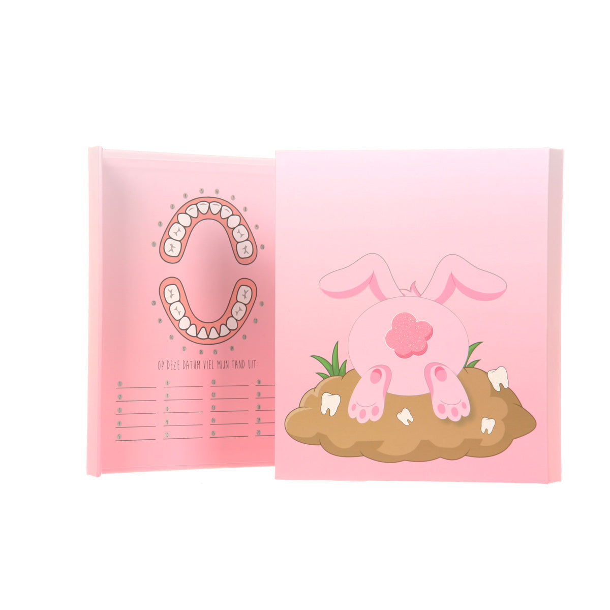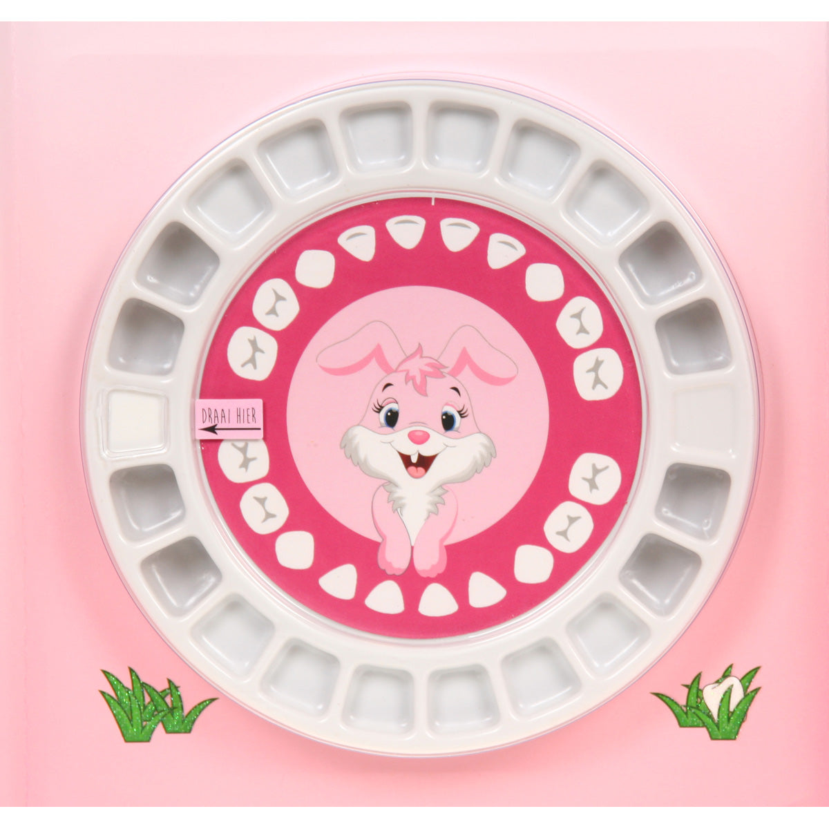 In het boekje vind je een handige houder met draaivakjes terug waar elke tand zijn eigen plekje heeft. Er is plaats voor een foto en bij elke tand kan je bijhouden wanneer deze gewisseld is.