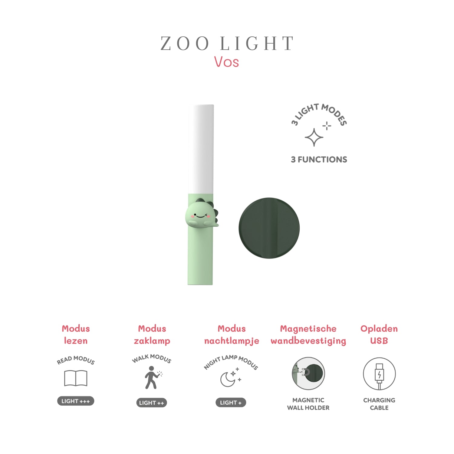 Zoo Buddy Light is een 3-in-1 draagbare kinderlamp met slaap-, loop- en leesstanden. Zacht licht voor het slapengaan, een zacht nachtlampje om te wandelen en een felle lichtbundel om te lezen. Leuk dierenontwerp, veilig voor kleine handjes en oplaadbaar voor eindeloze avonturen. Comfort en licht, dag en nacht!