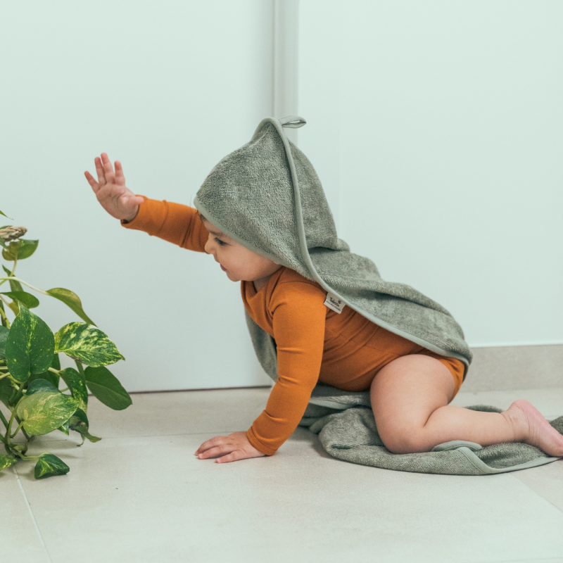 Met deze wikkelhanddoek/badcape kan je de baby na het badje knusjes inwikkelen en heerlijk zacht afdrogen, terwijl het hoofdje warm beschermd in het kapje zit. De unieke bamboestof, die 60% meer absorbeert dan katoenbadstof, zorgt ervoor dat de baby snel droogt en niet afkoelt.