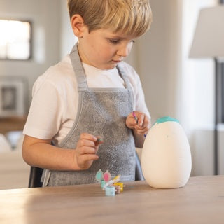 Dankzij het handige opbergzakje voor kwastjes of lepels, is het schort niet alleen mooi, maar ook praktisch in gebruik. De maat is afgestemd op jonge kinderen en past vlot over hun kleertjes zonder te hinderen in het bewegen.