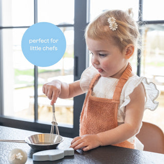 Dankzij het handige opbergzakje voor kwastjes of lepels, is het schort niet alleen mooi, maar ook praktisch in gebruik. De maat is afgestemd op jonge kinderen en past vlot over hun kleertjes zonder te hinderen in het bewegen.