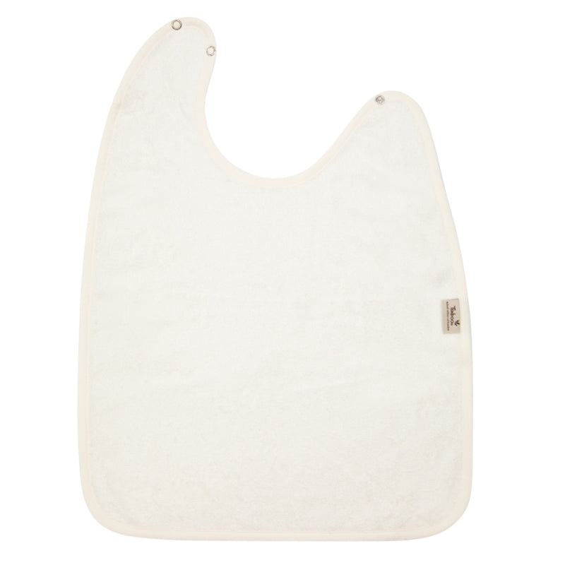 Praktische Timboo bamboeslab, geschikt om kleding te beschermen. Door de twee drukknopen kan de slab in twee verschillende standen dicht gemaakt worden, waardoor ze zowel voor baby's als peuters past. Deze slab is in verscheidene kleuren te verkrijgen.