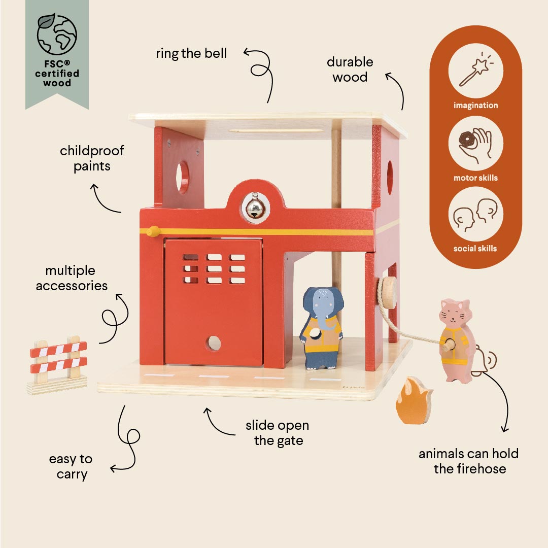 Het leukste houten speelgoed in huis van Trixie. Met deze coole brandweerkazerne beleeft je kindje uren spelplezier. Samen met de brandweerwagen gaat de fantasie en creativiteit er op los voor je kindje vanaf 3 jaar.