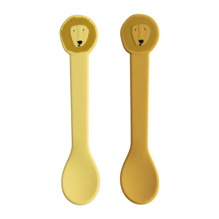 Twee kleurrijke lepels met een vrolijk gezicht om van je maaltijd te genieten! Deze lepel is perfect om je kind vast voedsel te geven. Kinderen kunnen ze ook gebruiken om zelfstandig te (leren) eten. In de lepel is een roestvrijstalen onderdeel geïntegreerd om de lepel sterk en recht te houden.