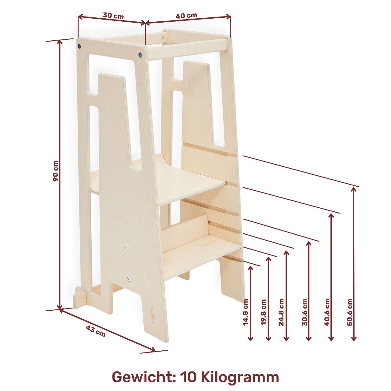 Deze leertoren van Tuki verstel je in hoogte naar drie verschillende standen. Zo geniet je kindje tot minimaal 8 jaar van deze leertoren! Als je de achterste bovenbalk verwijdert gebruik je de Tuki als opstapkruk en gebruik je hem zelfs ook als volwassene! #handig