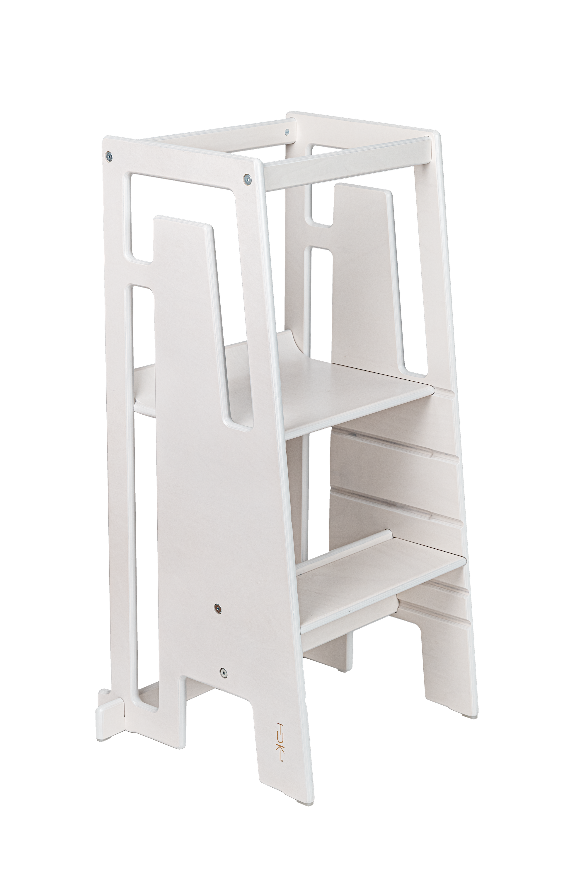 De leertoren is een veilig soort krukje waar kinderen zelf in en uit kunnen klimmen. Gebruik het in de keuken om je kind mee te laten kijken of helpen bij het bereiden van eten. Ook in de badkamer is het handig om aan de wastafel te gebruiken voor het tanden poesten of het wassen van de handen. Het meubel is geschikt voor nieuwsgierige peuters vanaf 12 maanden tot de leeftijd van 7 jaar.