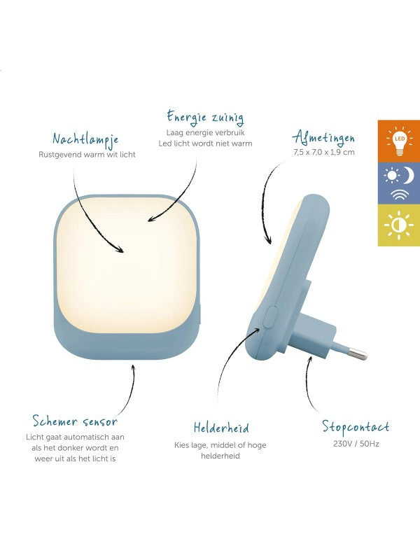 Kan ook dienen als oriëntatielampje in de gang. Het lampje heeft een ingebouwde, slimme fotocel lichtsensor die het zachte licht automatisch inschakelt bij schemering en uitschakelt bij de eerste lichtinval 's ochtends.